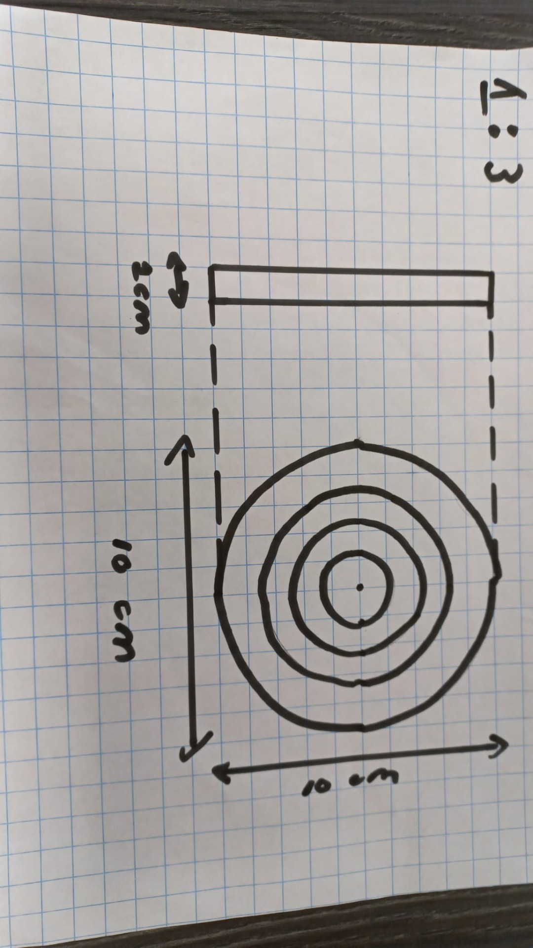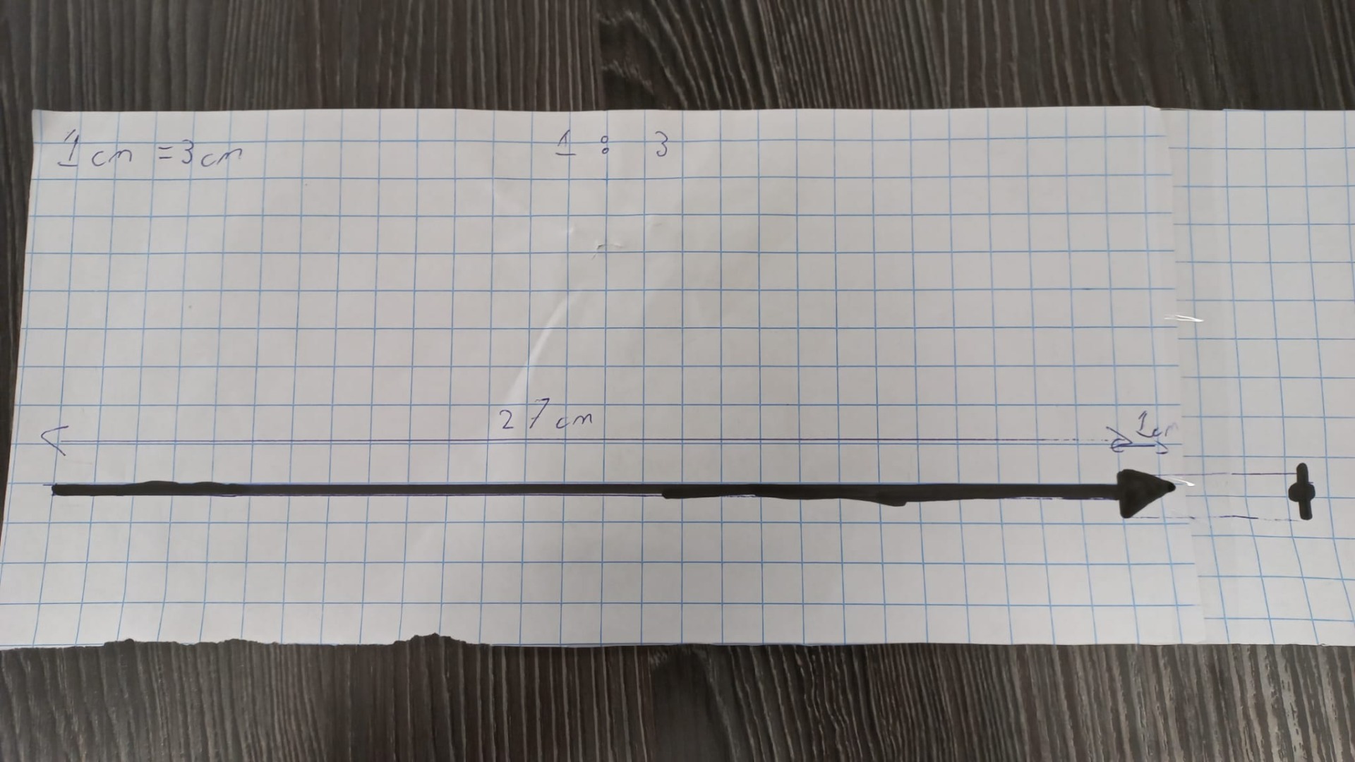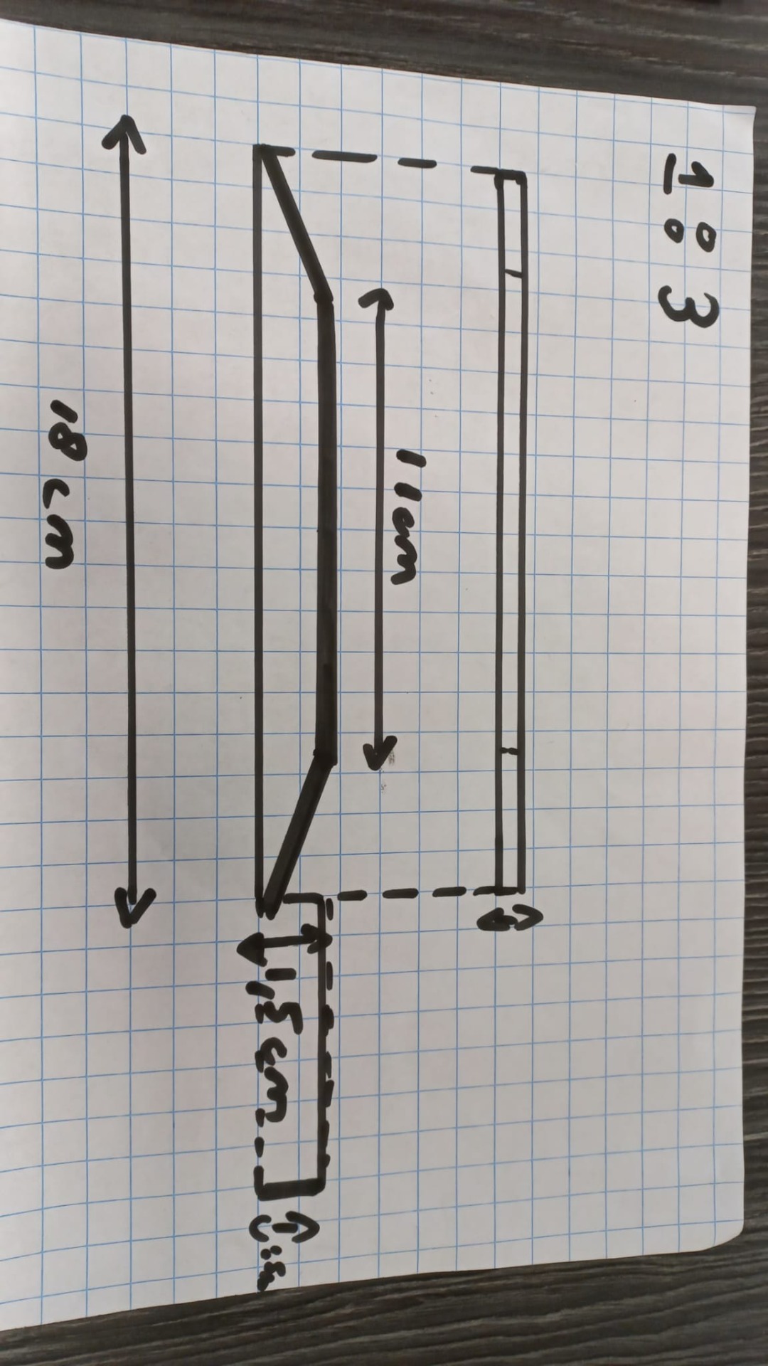 Dit is de bouwtekening voor de pijl. Dit moesten we maken zodat we een idee hadden hoe ons prototype eruit zou gaan zien. Hierop staan de afmetingen van de boog. En de schaal die we hebben gebruikt is 1:3